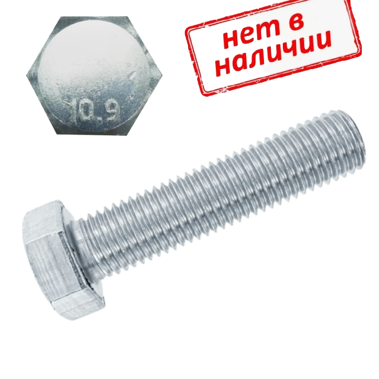 Болт шестигранный DIN 961 12х1,5х55 с мелкой полной резьбой, класс прочности 10.9, оцинкованный