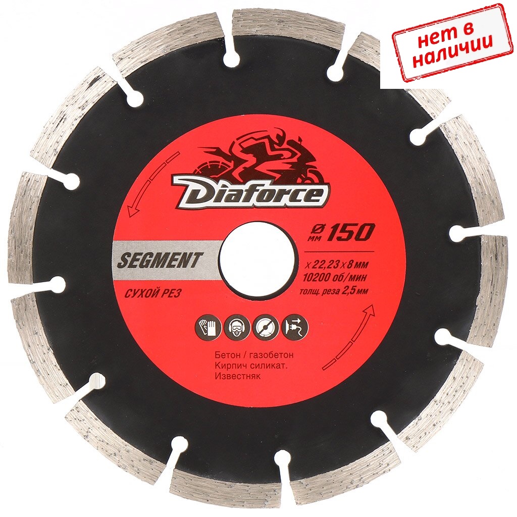 Круг 150х22,23х8х2,5мм DIAFORCE SEGMENT сухой рез арт. 500150