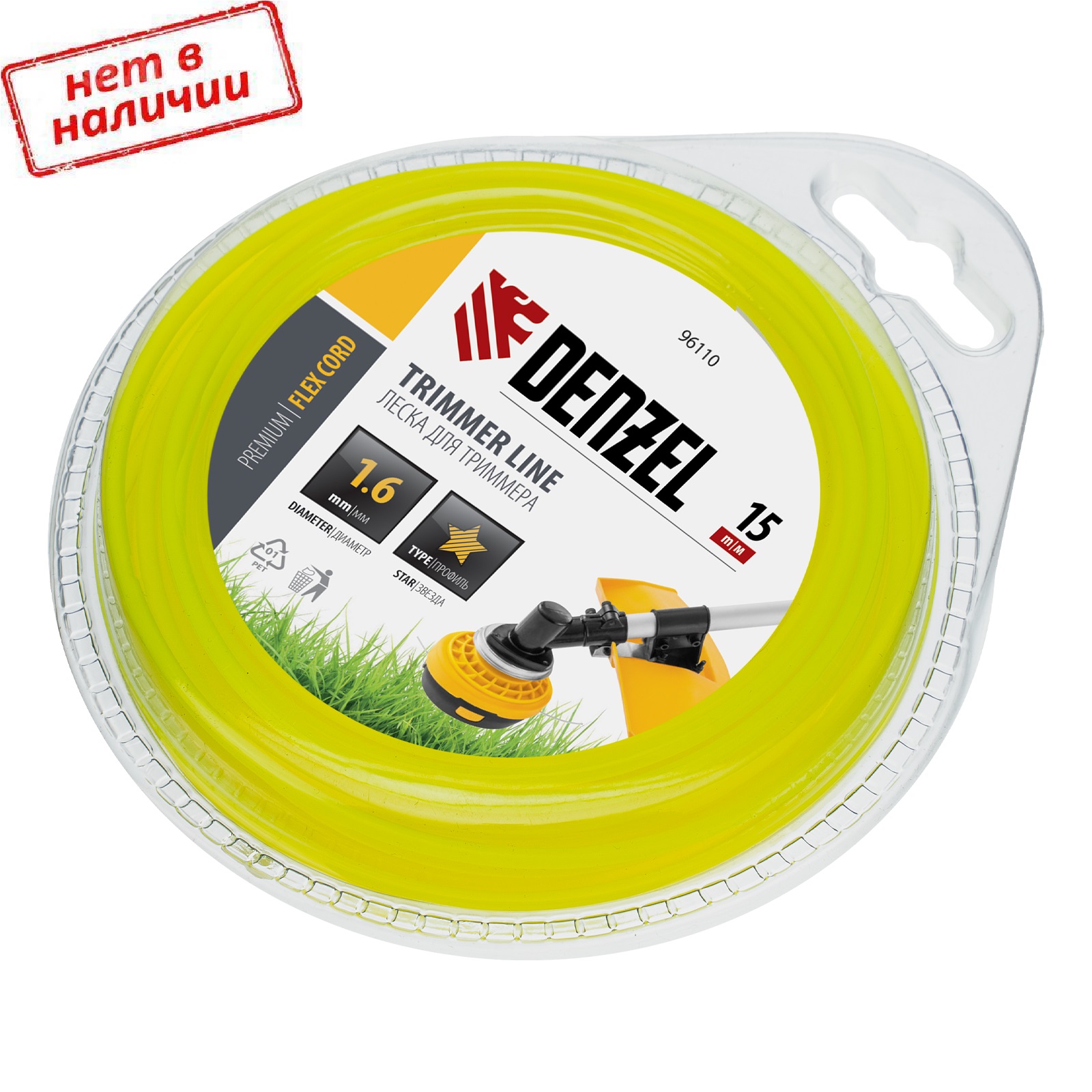 Леска Denzel FLEX CORD 96110 с сечением «звезда», диаметром 1,6 мм и длиной 15 м, поставляется в блистере и используется для электрических триммеров с нижним двигателем мощностью 300-600 Вт. Предназначена для стрижки газонной, густой или сухой травы с тонкими стеблями.