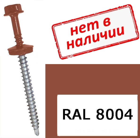 Саморез кровельный 4,8х50мм со сверлом и шайбой по дереву RAL 8004