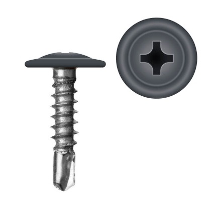 Саморез (с прессшайбой) окрашенный RAL7024 4,2х32мм со сверлом, оцинкованная сталь