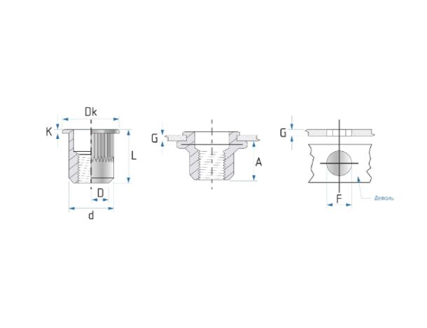 Заклепка М8 стандартный борт с внутренней резьбой с насечкой NITLIX 3-6мм арт. NX-M8-FK-21