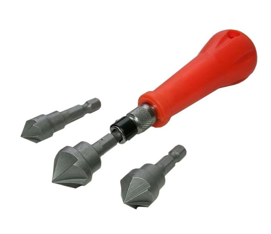 Зенкер ручной (съемник фасок) 3 насадки - 12, 16, 19 мм предназначен для снятия фасок и заусенцев, образования углублений под потайные головки винтов, болтов и заклепок. Преимуществом зенкера над обычным сверлом является более высокая жесткость благодаря режущим зубьям, что обеспечивает высокую точность направления движения инструмента.